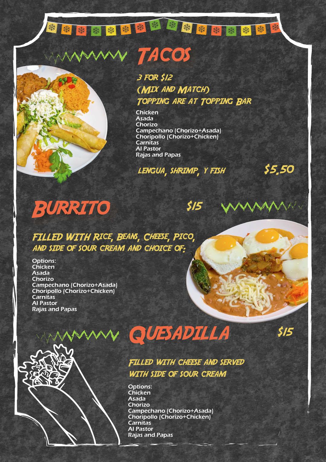 Come enjoy a cozy atmosphere and accompany your tacos with our delicious homemade sauces.